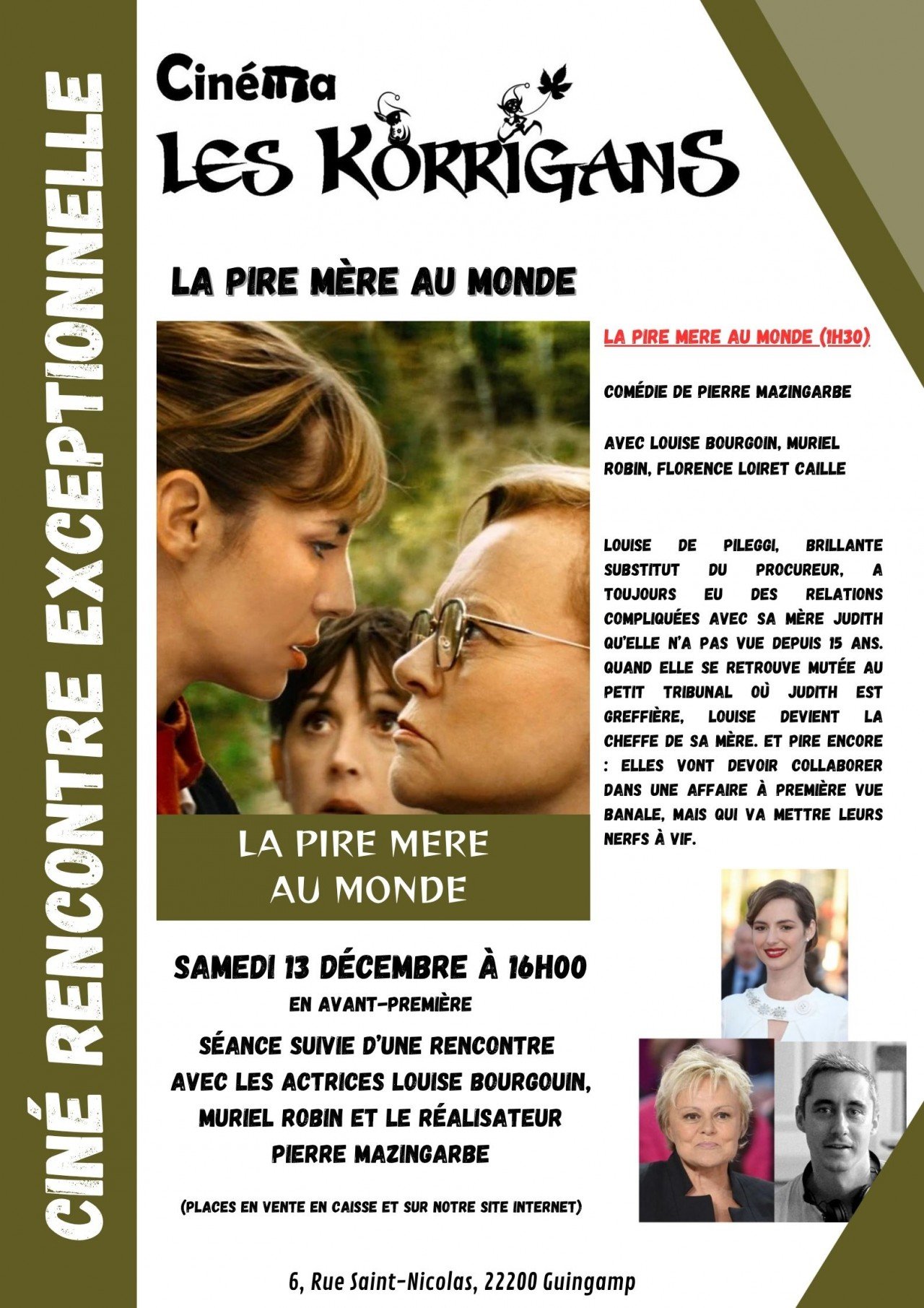« La pire mère au monde » - Samedi 13 Décembre à 16h en avant-première, en présence de Muriel Robin, Louise Bourgoin et du réalisateur pierre Mazingarbe – Places en vente en caisse ou sur notre site internet.