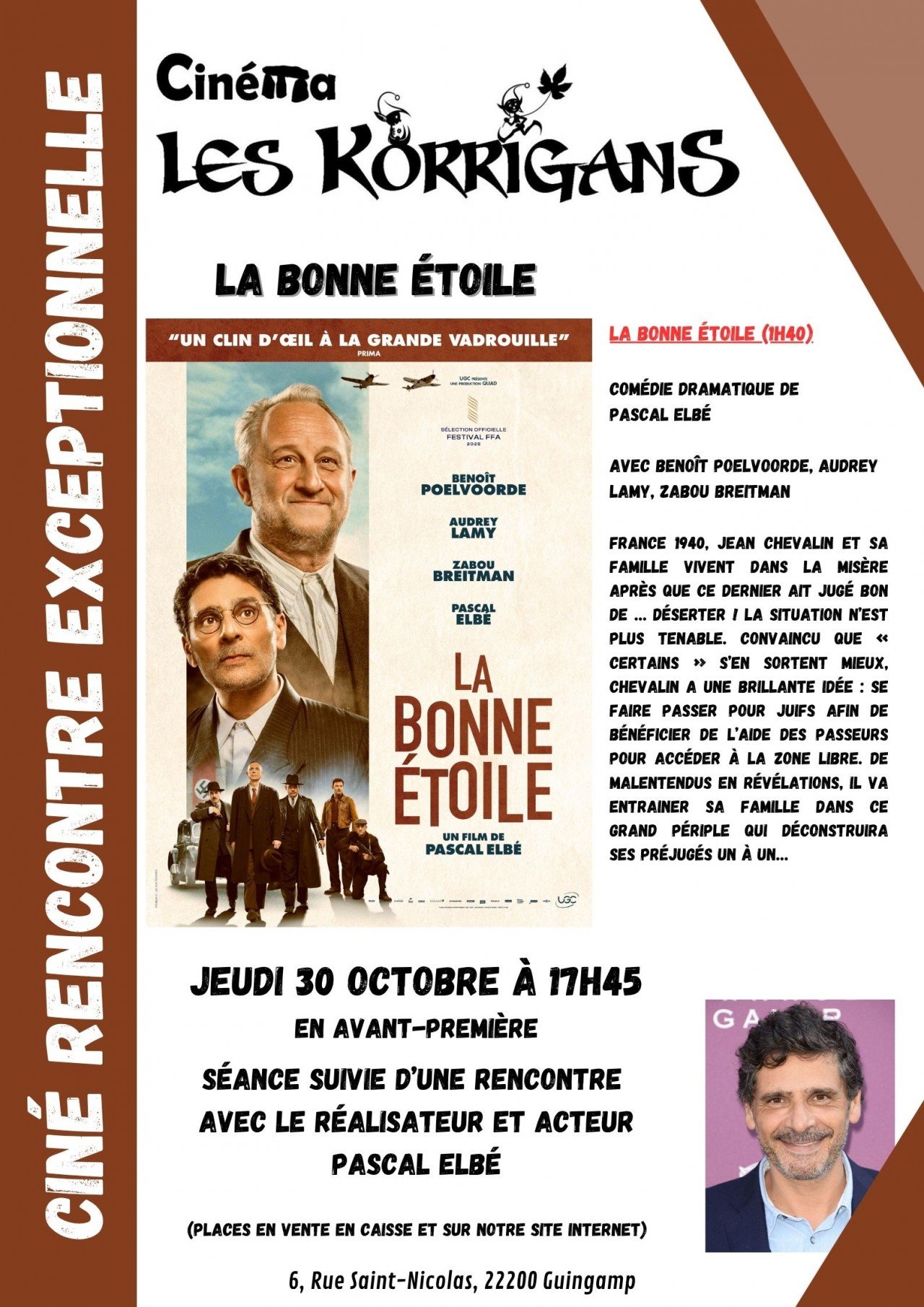 « La bonne étoile » - Jeudi 30 Octobre à 17h45 en présence du réalisateur et comédien Pascal Elbé
