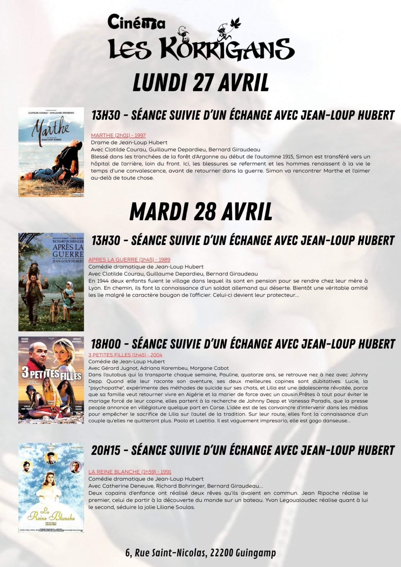 Journées spéciales consacrées au réalisateur Jean-Loup Hubert (6.50€ la place par film)