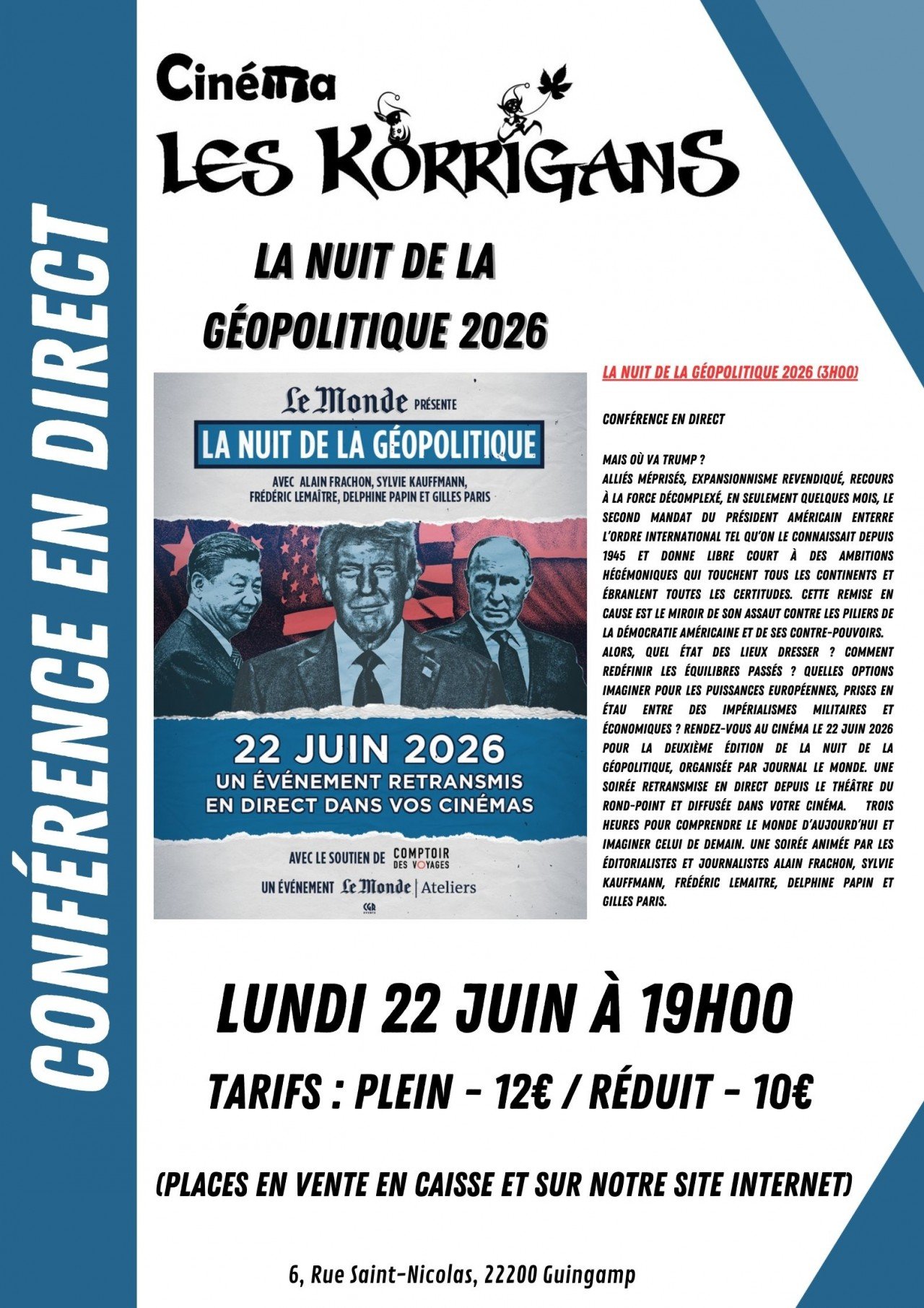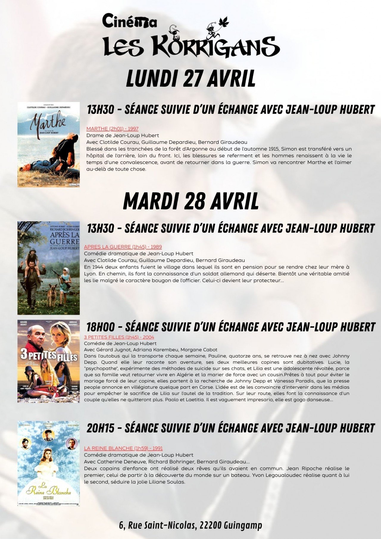 Cinéma Les Korrigans, 6 rue st Nicolas, 22200 Guingamp | Mentions légales | Contact | Tel : 02 96 43 73 07