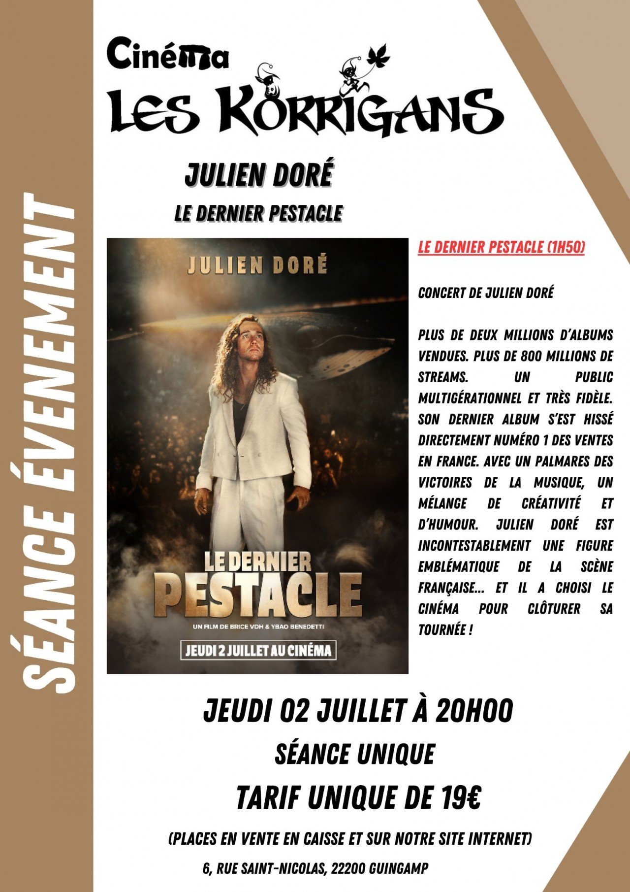 Actu ciné, avant première, évènements, découvrez toute l'actualité du cinéma Les Korrigans.